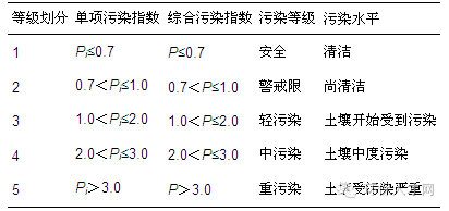 單因子指數(shù)法:單因子指數(shù)法是國內(nèi)外普遍采用的方法之一,是對土壤中某一污染物的污染程度進(jìn)行評價,其計算公式為: