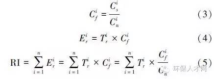 沉積物重金屬潛在生態(tài)風(fēng)險評價采用瑞典科學(xué)家Hakanson 提出的評價方法,該方法綜合考慮了多元素協(xié)同作用、毒性水平、污染濃度及環(huán)境對重金屬污染敏感性等因素,消除了區(qū)域差異及異源污染的影響,已成為目前沉積物重金屬污染質(zhì)量評價應(yīng)用廣泛的一種方法計算公式如下: