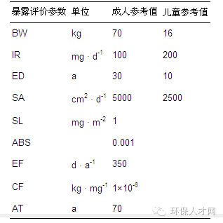 表5 健康風(fēng)險評價模型暴露參數(shù)