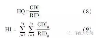 單個污染物單一暴露途徑的非致癌風(fēng)險以 HQ表示,多污染物多途徑聯(lián)合非致癌風(fēng)險以 HI表示,計算公式分別如下: